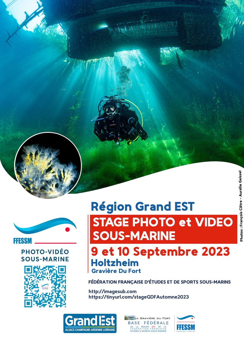 La Commission Photo Video Régionale Est FFESSM, avec le soutien des commissions photo-vidéo des CODEP67 et CODEP68, vous annonce l'ouverture des inscriptions pour son traditionnel stage d'automne les 9 et 10 septembre 2023 (en fait c'est plutôt la fin de l'été
